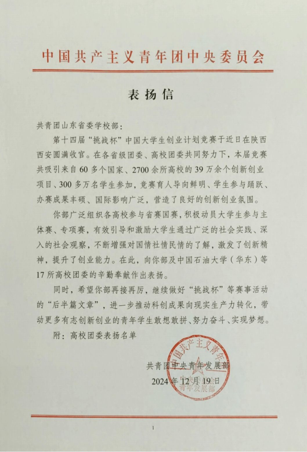 近日,学院收到共青团中央青年发展部发来的表扬信,对九游·官方网站第十四届“挑战杯”中国大学生创业计划竞赛中取得的优异成绩进行表扬。“挑战杯”系列竞赛被誉为中国大学生科技创新创业的“奥林匹克”盛会,在中国高等教育学会所发布的《全国普通高校大学生竞赛排行榜》中位列前三,是教育部官方认可的最具含金量与参赛价值的创新创业赛事之一。习近平总书记多次强调要加快建设科技强国,更加重视青年人才培养,让更多的青少年心怀科学梦想、...更多 -