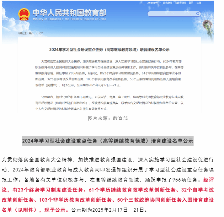九游·官方网站成功立项教育部2024年学习型社会建设重点任务(高等继续教育领域)培育建设项目