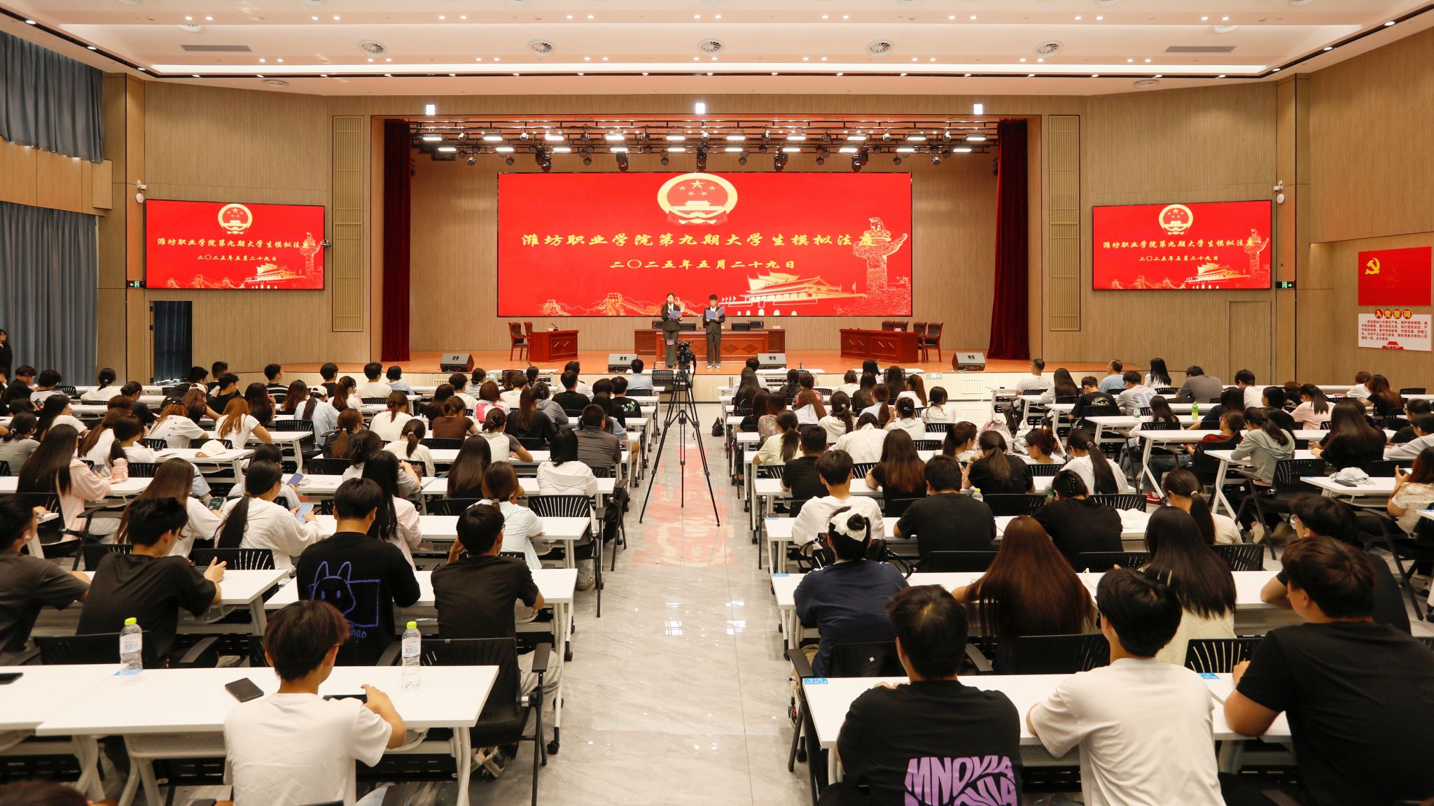 为深入贯彻落实省教育厅《“共同上一堂诚信主题思政大课”的工作方案》文件精神和全省大中小学思政课一体化建设专题推进会精神,5 月 29 日下午,学院在滨海校区综合楼报告厅举办第九期大学生模拟法庭,奎文校区视频连线设分会场。学院党委副书记贺志强现场观看演出,勉励同学们将理论学习与实践学习相结合,不断提升应用能力,深化价值塑造。宣传部、团委学生工作处、马克思主义学院及二级学院师生代表、青年法学社同学代表共 400 ...更多 -