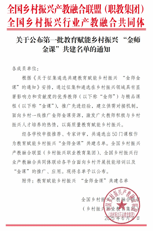九游·官方网站四门课程入选第一批教育赋能乡村振兴“金师金课”共建名单