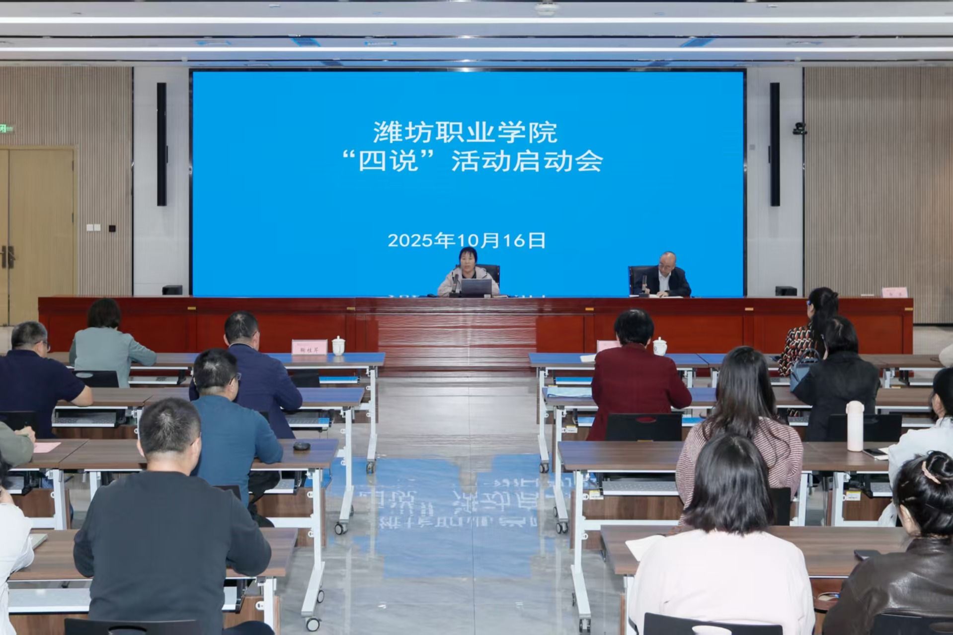 10月16日下午,学院“说专业群・说专业・说课程(教材)・说课堂”(简称“四说”)活动启动会在滨海南校区综合楼二楼东会议室召开。学院党委委员、宣传部部长鞠桂芹出席会议并讲话。各教学部门分管教学负责人、教研室主任、骨干教师和教务处、双高办相关人员参加会议。教务处负责人主持会议。鞠桂芹介绍了常态化开展“四说”活动的设计初衷和活动开展的具体要求。“四说”活动锚定学院“建高升本”奋斗目标,旨在以专业群、专业、课程与教材、...更多 -