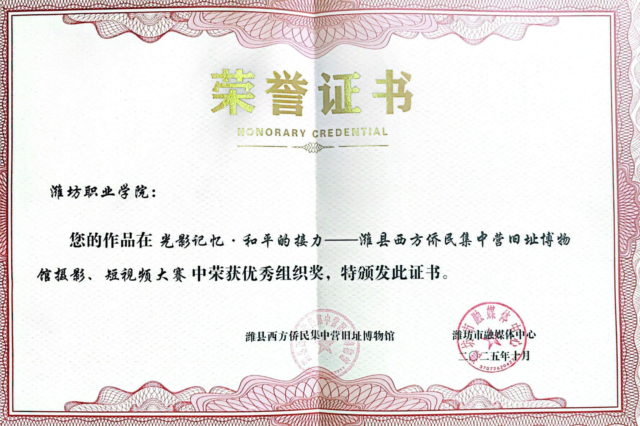 学院在“光影记忆·和平的接力“——潍县西方侨民集中营旧址博物馆摄影、短视频大赛中获奖