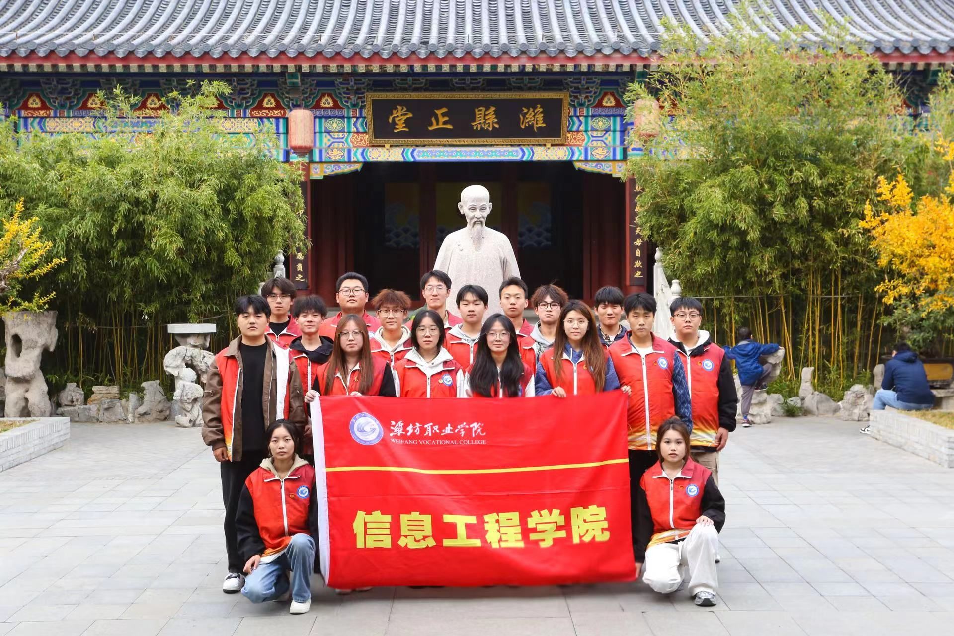 为深入贯彻落实党的二十大精神,加强新时代廉洁文化深入校园,进一步强化青年学生的廉洁自律意识,深化清廉文化教育和道德教育,让清风正气在青年学子中蔚然成风,11月10日,信息工程学院组织开展“走进历史,传承清廉”主题团日活动。活动当天,信息工程学院20名团员代表前往郑板桥纪念馆参观学习,深深感受清廉文化的传承与力量。纪念馆内,同学们认真参观学习并记下笔记,以严谨的态度投入到对清廉文化的学习中,试图从中找到与现代生活相契合的启示与借鉴。...更多 -