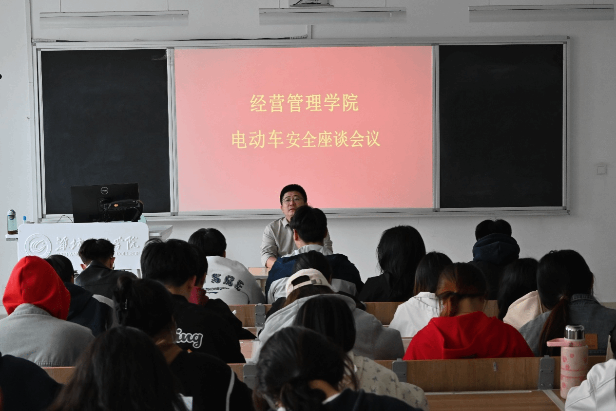 为进一步规范校园电动车使用管理,消除安全隐患,保障师生出行安全,经营管理学院于3月28日下午开展电动车安全座谈交流会。会议由辅导员办公室主任(团总支书记)主持,辅导员及学生骨干代表参加。座谈会上,辅导员办公室主任(团总支书记)针对前期学生电动车使用统计情况,结合近期发生的电动车安全事故典型案例,指出近年来校园内学生电动车数量增加,随之而来的违规充电、超速行驶、乱停乱放等问题日益突出,存在较大安全隐患。...更多 -