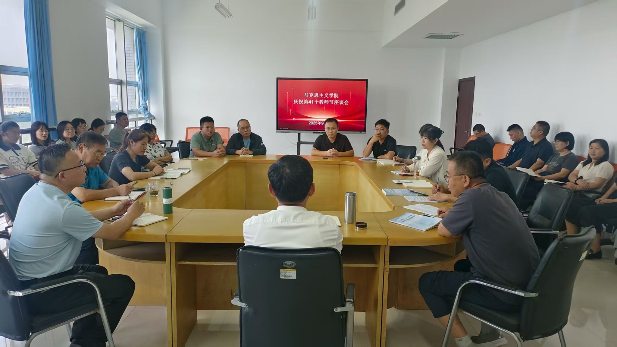 为弘扬教育家精神,营造尊师重教的良好氛围,9月8日下午,马克思主义学院在清泽楼517室举行庆祝第四十一个教师节座谈会,学院党政负责人及全体思政课教师参会。座谈会上,党支部负责同志重点学习传达了学院党委书记王浩和院长韩瑞东在学院2025年教师节庆祝大会上的讲话精神,并向全体教师致以崇高敬意与美好的节日祝福。部门主要负责同志从教学比赛、师资队伍、教科研、“大思政课”建设、社会服务、党支部建设等方面,总结了上学年马克思主义学院所取得的优异成绩,...更多 -