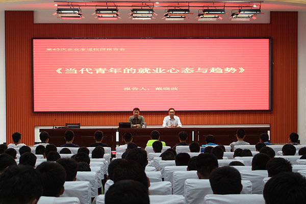 戴晓波在报告中以自身的亲身经历为典型案例,从人生目标、就业观念、应聘策略、关注执行力、挫折是财富等方面分析了当代青年的就业心态与趋势。他讲到,就业的第一步就是要端正就业观念,先就业再择业。学生要找到一份好的工作,掌握应聘的技巧非常关键,精致的简历、优秀的钢笔书写、真诚的语言是应聘成功的重要因素。就业后要首先确定自己的人生目标,人生目标是自己行为的导向,能否实现要靠自身的意志力和坚决的执行力,这两个合力是事业成功的重要所在。人生的挫折是财富,失之东隅、补之桑榆,要不失时机地寻找成功的机会。报告会真实生动,贴近学生实际,全体师生听的津津有味,不时报以热烈的掌声。最后,报告会以戴晓波董事长自己的两句左右铭作为结束语:“人什么都可以没有,千万不能没有用”;“无论干什么事情,不是你一个人在做,别人能做到,我也能做到”。