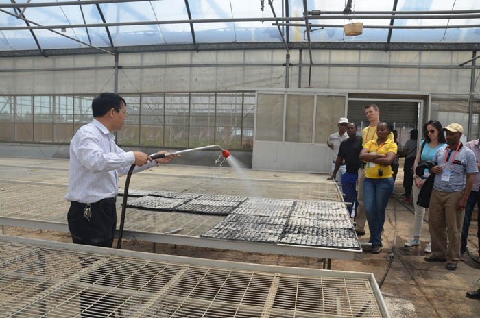 农业工程学院专业教师作了《农业大棚蔬菜栽培技术知识》讲座,声情并茂讲解了大棚蔬菜土壤及肥水管理、蔬菜工厂化育苗、常见病虫害无公害防治技术。随后,召开了“大棚蔬菜从业者经验交流会”,远道而来的洋学员对我国大棚蔬菜栽培技术表现出了浓厚兴趣,现场交流互动热烈,洋学员们频频提问,指导教师有问必答,耐心讲解大棚蔬菜嫁接技术,博得了洋学员交口称赞。他们一致表示来潍学好大棚蔬菜建造、蔬菜无土栽培和工厂化育苗技术,回国后进行应用推广,提高本国蔬菜种植水平。