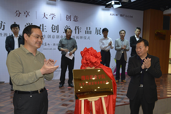 5月10日,首届“分享•大学•创意”潍坊大学生文化创意作品展开幕式暨九游·官方网站大学生创意创业孵化器揭牌仪式,在京广文化广场潍州大讲堂举行。学院副院长贺志强,中共奎文区委常委、宣传部长李强,潍坊银行开发管辖行行长稽海涛,奎文文化创意产业协会会长刘晓阳,奎文文化创意产业协会秘书长纪建华出席。师范/文化创意学院主要负责同志及部分师生、北京出版集团负责同志、高校创业研究专家、金融机构代表、风投机构代表和媒体记者百余人参加了活动。