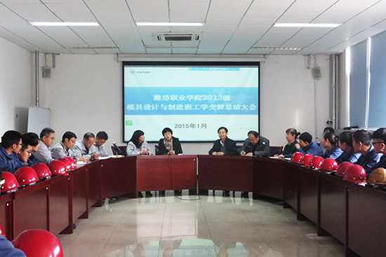 1月14日,机电工程学院在山东潍坊福田模具有限公司召开2013级模具设计与制造班工学交替实习总结座谈会。该院主要负责同志、福田模具人力资源部负责人、各工段车间主任和40多名学生参加了座谈会。
