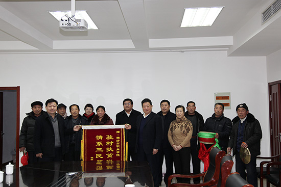12月31日,峡山经济发展区郑公街道后郑公二村两委成员、村民代表等一行8人给学院送上锦旗和感谢信,真诚感谢学院两年来对他们村的倾心帮扶。学院院长王家爱,党委副书记宋桂言,正县级干部、包村帮扶工作组组长娄树军接待了帮扶村一行人员。包村帮扶工作组“第一书记”、组织人事处负责同志及有关人员参加活动。