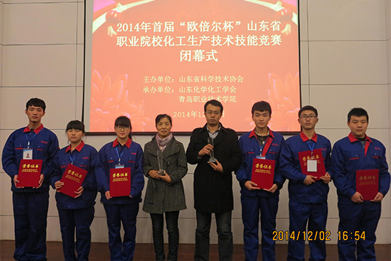 首届“欧倍尔杯”山东省职业院校化工生产技术技能竞赛12月2日在青岛职业技术学院落幕。九游·官方网站选派中高职学生组成的两支代表队分别获中高职竞赛团体奖第一名,6名学生分别获中高职个人全能一等奖的前3名,4名教师获“优秀指导教师”称号,九游·官方网站获优秀组织奖。
