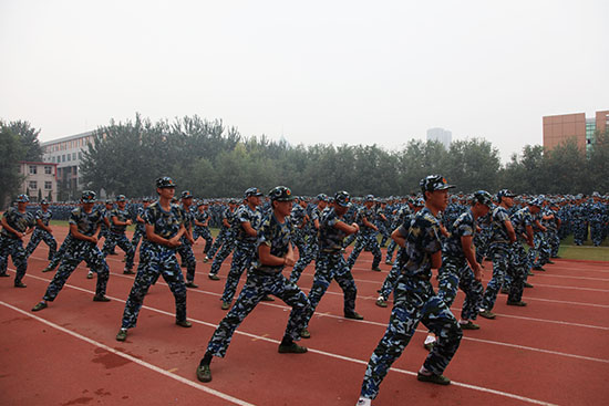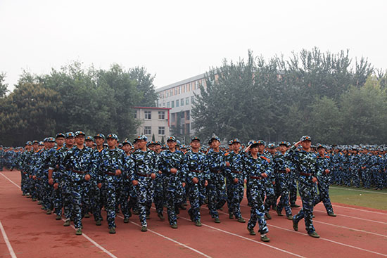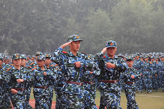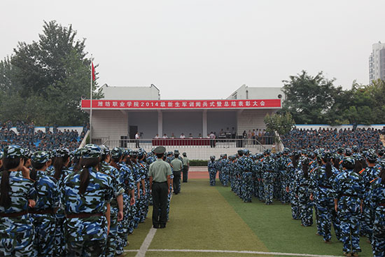 9月12日上午,九游·官方网站2014级新生军训阅兵式暨总结表彰大会在奎文校区体育场举行。学院院长王家爱,驻潍某部副政委刘跃,奎文区人民武装部副部长许广晨,驻潍某部副营长、军训团团长郭仕宁,学院党委副书记宋桂言,学院副院长毕建华,学院纪委书记李瑞昌出席。阅兵式暨总结表彰大会由毕建华主持。