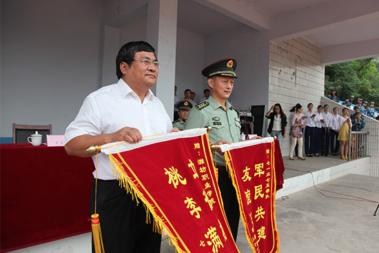 阅兵式结束,军训团团长郭仕宁宣布军训表彰通令。学院领导和部队首长为受表彰的军训先进集体和先进个人代表颁奖。