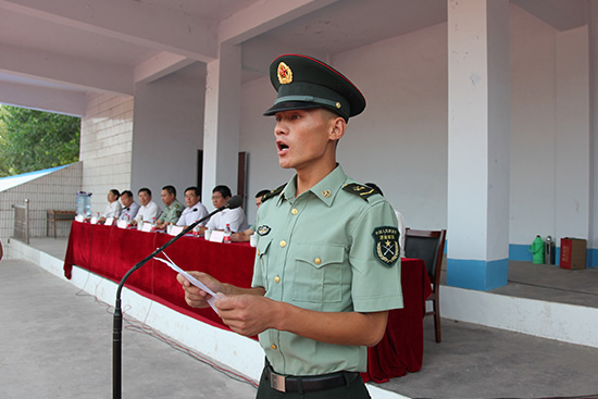 王家爱发表了热情洋溢的讲话。他向全体新生介绍了学院的发展历程、办学条件和取得的办学成就,对同学们提出了希望和要求。他说,同学们从今天起将开启人生崭新的一页,面对新的环境和新的起点,要志存高远,脚踏实地,拼搏进取,在努力实现“我的中国梦”的伟大实践中创造自己的精彩人生;要修身立德,不断锤炼个人品格,提高个人修养,努力成为具有良好思想政治素质、优良道德品质和健全人格的德才兼备、高素质的社会主义建设合格人才;要勤学善思,学好学科知识和专业技能、提高能力,努力成为具有一定理论基础和较强分析、解决问题能力的高素质技能型人才。他要求同学们高标准、高质量地上好军训这堂课,在军训中磨练自己的意志和品格,把人民军队的好思想、好品德、好作风、好传统真正学到手,为提高自我教育、自我服务、自我管理的独立学习生活能力奠定坚实基础。
