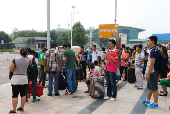 潍坊市政府党组成员、学院党委书记陈仁杰,学院院长王家爱,党委副书记宋桂言,副院长赵君堂、贺志强、毕建华现场察看新生报到情况,走进学生公寓看望了报到入住的新生。