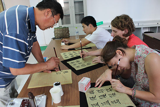 通过三周时间的学习和体验,三名洋学生不仅汉语水平有了很大提高,也与学院老师结下了深厚的感情,增进了对中国传统文化的了解。Alex刻苦好学,从零基础到200个词汇量,能用简短的汉语进行自我介绍,能听懂简单的日常词汇。他坚持将每天的生活学习拍摄下来,配上音乐,做成了精彩的DV,准备回到美国后向同学和老师们展示。16岁的James非常喜欢他的中国家庭,说“中国的爸爸妈妈张开双臂像迎接自己的孩子一样欢迎他”。Leotie姑娘为参加此次研修活动,甚至放弃了国家汉办汉语桥免费提供的的夏令营活动。她学会了流行歌曲《你是我的小苹果》,感受到在中国学汉语和在美国学习汉语是完全不同的,这里的学习生动有趣、富有成效。美国学生良好的学习习惯以及多才多艺、吃苦耐劳、生活自理能力强等方面的特点,也给学院的老师们留下了深刻印象。(李珊珊供稿)