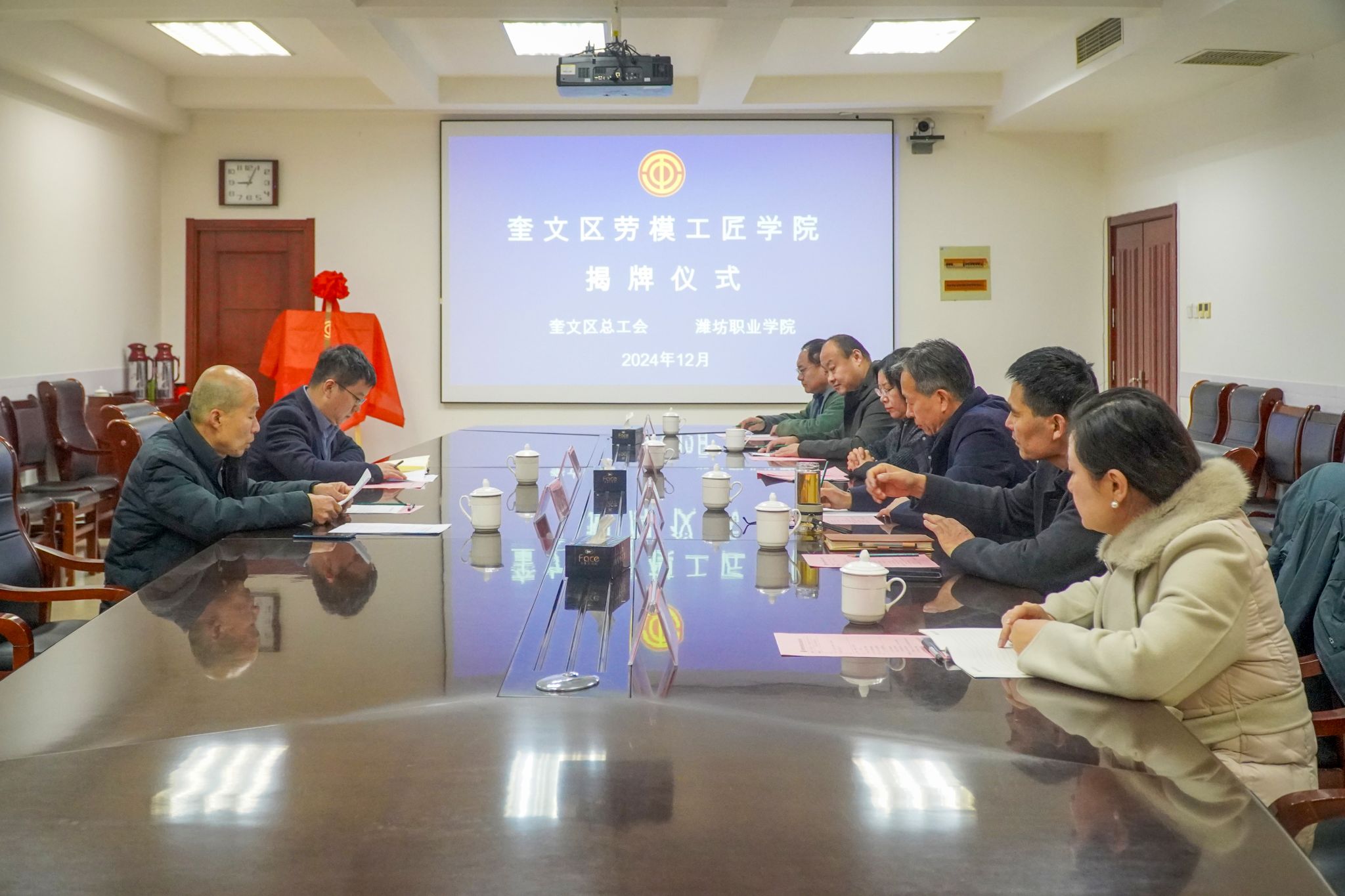 12月31日,奎文区劳模工匠学院在九游·官方网站奎文校区举行揭牌仪式暨合作发展座谈会。九游·官方网站党委委员高凌云,奎文区总工会党组成员、一级主任科员李军,学院工会主席,教务处、继续教育学院、机电工程学院负责人及教师代表出席活动。
