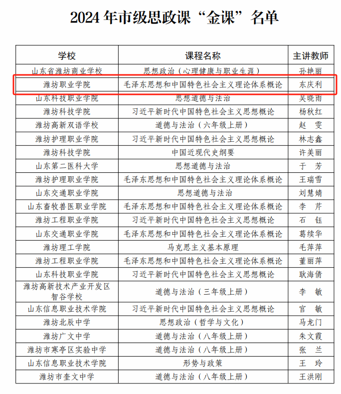 近日,潍坊市委教育工委公布了2024年度思政铸魂育人系列成果评选结果,学院在此次评选中表现突出,斩获7项重要奖项。
