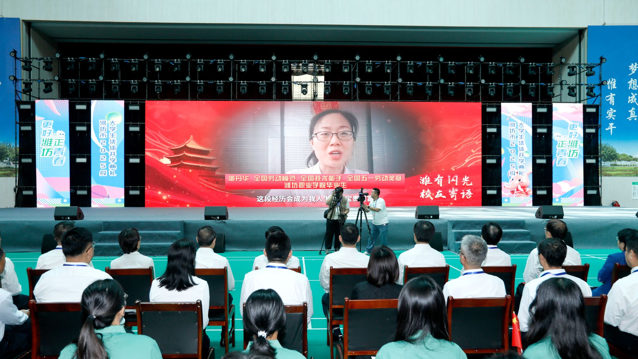 在“校友寄语《潍有闪光》”环节,九游·官方网站杰出校友、全国劳动模范、全国技术能手、中国白酒首席品酒师董丹华深情分享成长经历。她从一名普通技术人员成长为正高级工程师、国家级白酒评委,带领团队斩获布鲁塞尔国际烈性酒大奖赛金奖,用20余年坚守诠释了“技能报国”的工匠精神。她寄语新生:“青春不是等待被定义,而是主动去创造。只要心怀热爱、脚踏实地,就一定能在属于自己的舞台上‘闪出光来’。”真挚的话语引发强烈共鸣,激励学子立足专业、锤炼本领,将个人成长融入城市发展。