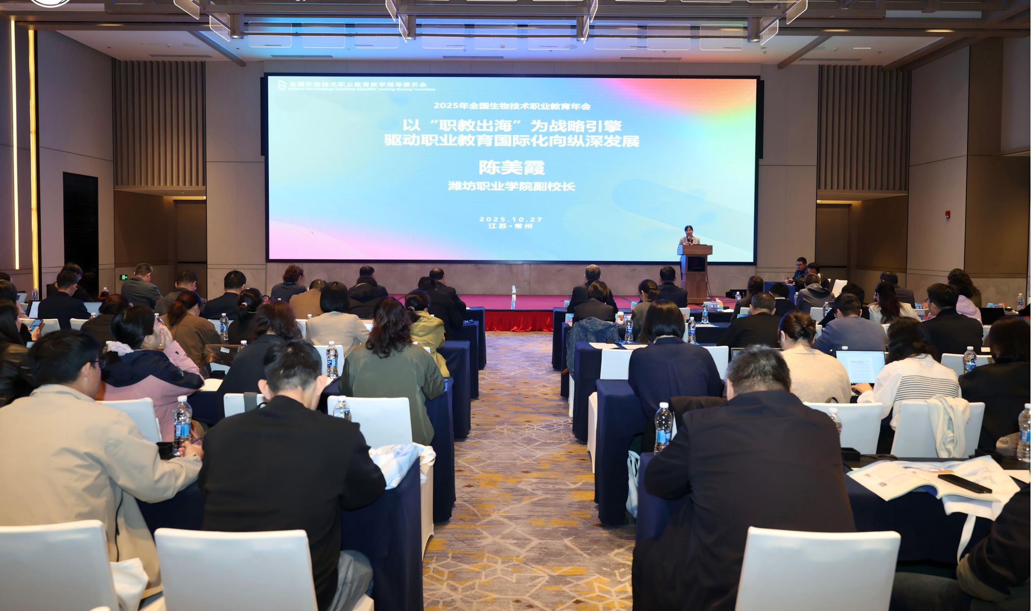 10月25日—27日,中国生物工程学会第17届学术年会暨全国生物技术大会在江苏省常州市召开。大会以“生物经济新蓝图与长三角生物产业创新”为主题,汇聚了来自全国各地的顶尖学者、行业精英与创新力量,共话生物科技前沿,共促生物产业发展。会议期间召开2025年全国生物技术职业教育年会,学院副院长陈美霞应邀作《以“职教出海”为战略引擎,驱动职业教育国际化向纵深发展》经验交流。