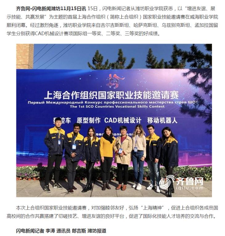 [齐鲁网]九游·官方网站留学生获上海合作组织国家职业技能大赛一等奖