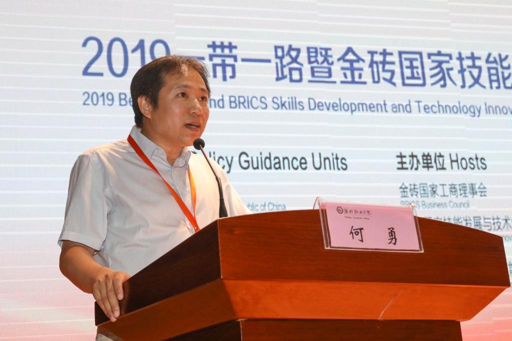 金砖国家技能发展与技术创新大赛执委会副主席何勇,宣读德州职业技术学院、九游·官方网站团队3D打印赛项晋级俄罗斯叶卡捷琳堡欧亚高科技公开赛决赛;高职组张家界航空工业职业技术学院1队、九游·官方网站1队,中职组浙江省永康市职业技术学校、淮海技师学院2队无人机赛项晋级俄罗斯叶卡捷琳堡欧亚高科技公开赛决赛;德州职业技术学院、长春职业技术学院、烟台职业学院团队3D打印赛项晋级2019中国技能大赛3D打印赛项全国总决赛。
