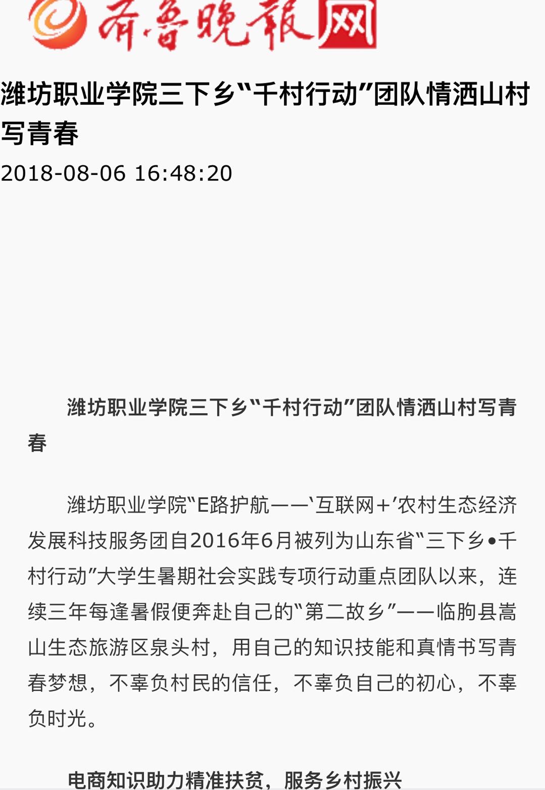 [齐鲁晚报]九游·官方网站三下乡“千村行动”团队情洒山村写青春