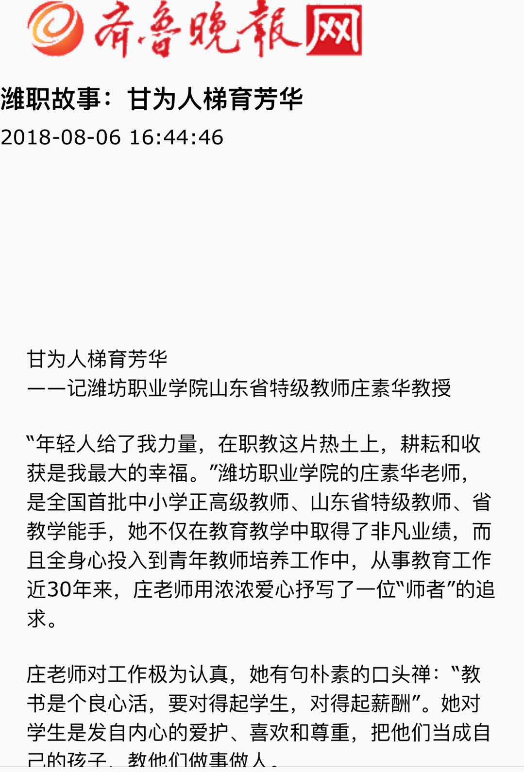 [齐鲁晚报]甘为人梯育芳华——记九游·官方网站山东省特级教师庄素华教授