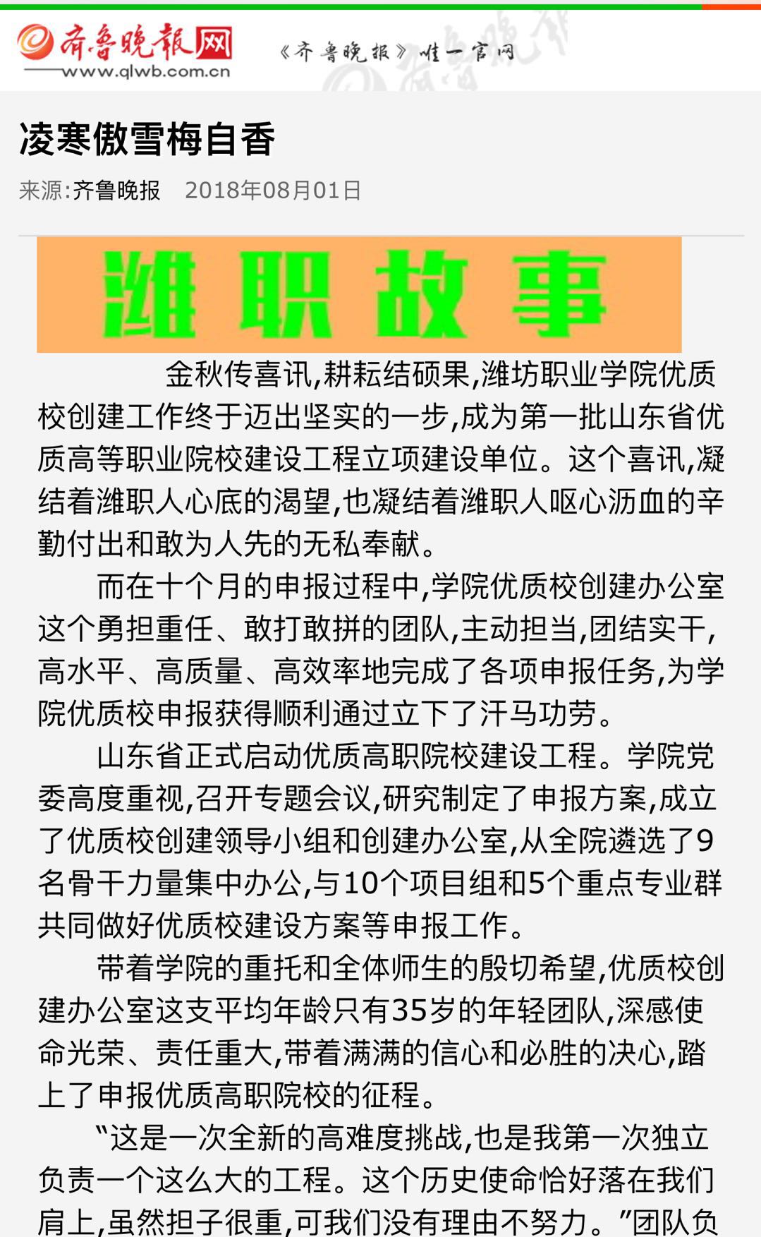 [齐鲁晚报]凌寒傲雪梅自香——记九游·官方网站优质校创建办公室先进事迹