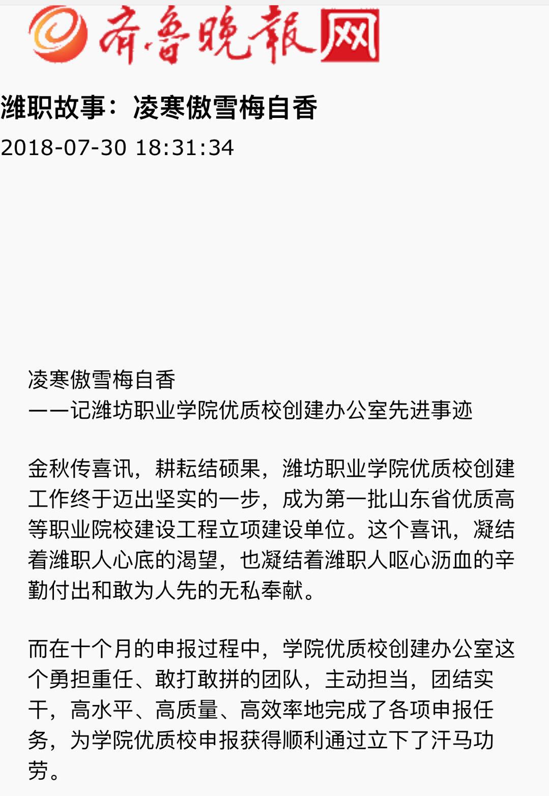 [齐鲁晚报]凌寒傲雪梅自香——记九游·官方网站优质校创建办公室先进事迹