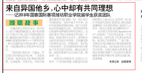 [齐鲁晚报]来自异国他乡,心中却有共同理想——记2018国赛国际赛项九游·官方网站留学生获奖团队