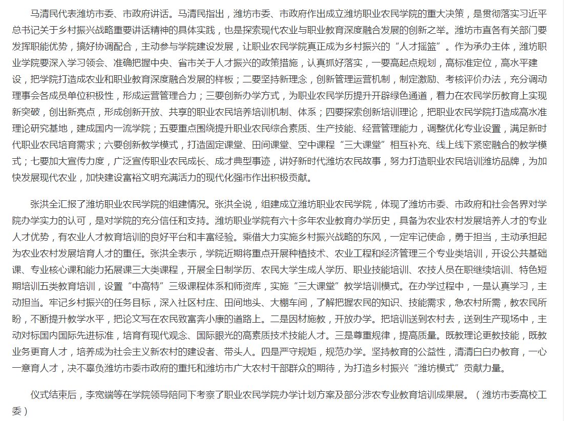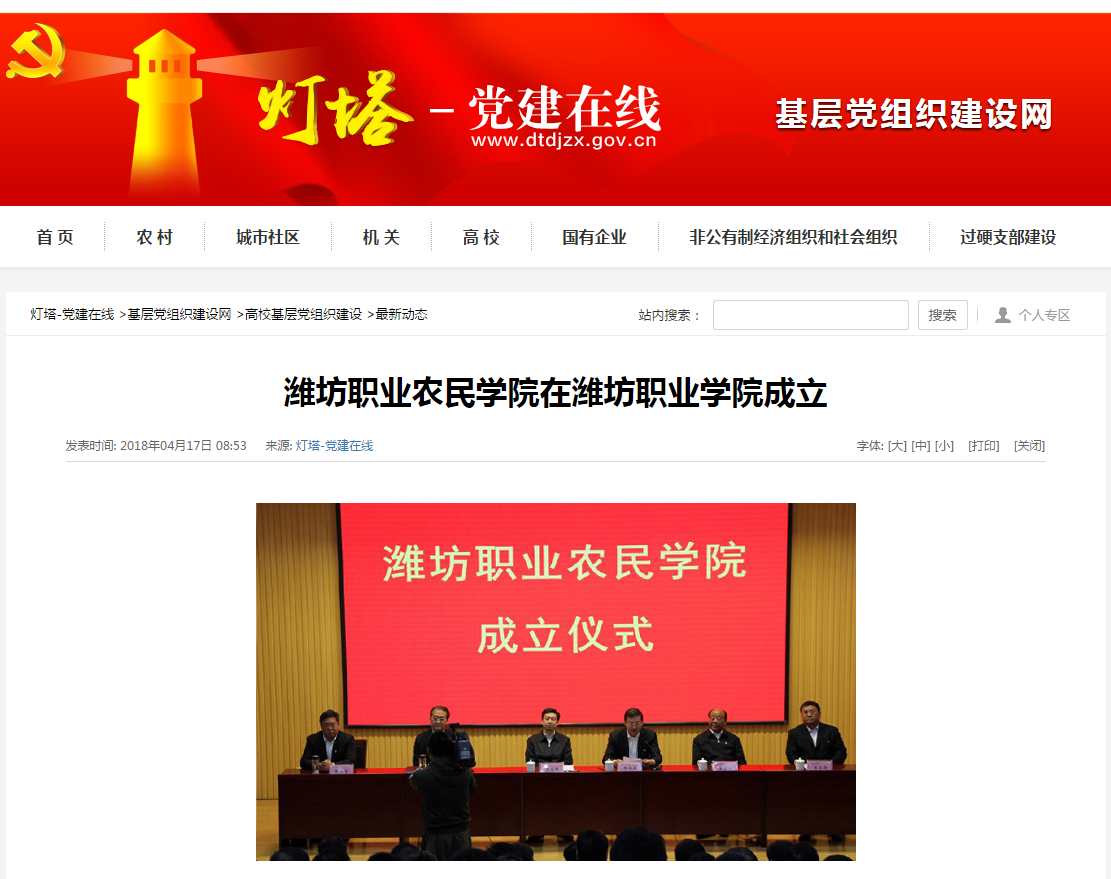 [灯塔—党建在线]潍坊职业农民学院在九游·官方网站成立