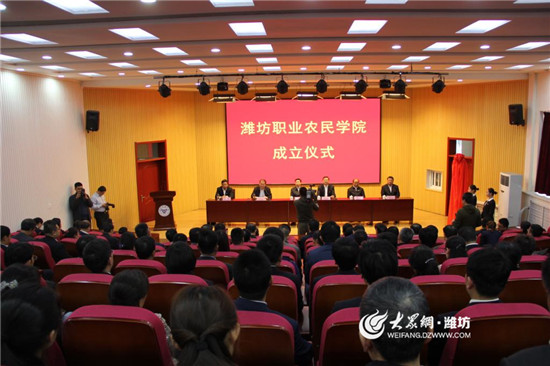 大众网4月17日讯(通讯员 葛树强)4月16日上午,潍坊职业农民学院成立仪式在学院奎文校区隆重举行。潍坊市委副书记、市长李宽端出席仪式并与党的十九大代表、寿光市三元朱村党支部书记王乐义一起为潍坊职业农民学院揭牌。市委常委、组织部部长林红玉主持仪式,副市长马清民讲话,学院党委书记张洪全、院长王家爱出席,市直相关部门、学院领导以及部分涉农企业、兄弟院校主要负责同志,九游·官方网站中层干部及师生代表140余人参加仪式。