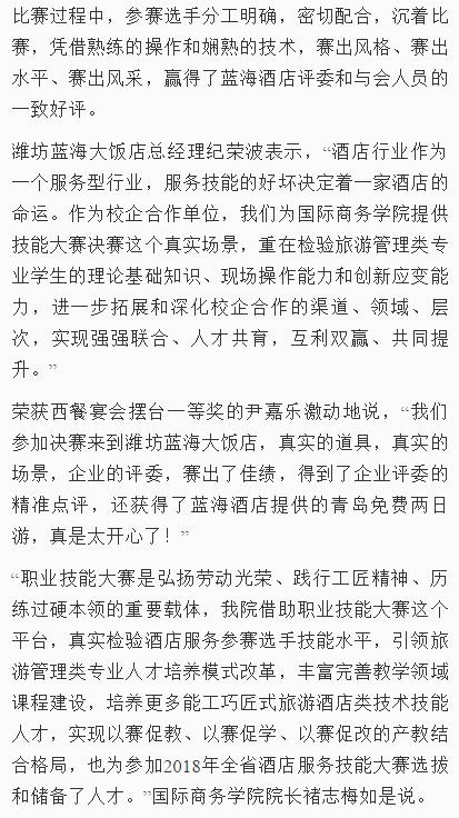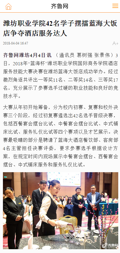 [齐鲁网]九游·官方网站42名学子摆擂蓝海大饭店争夺酒店服务达人