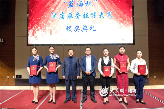 大众网4月4日讯(通讯员 葛树强)4月3日,2018年“蓝海杯”国际商务学院酒店服务技能大赛决赛在潍坊蓝海大饭店成功举办。学院副院长贺志强出席颁奖仪式,蓝海酒店集团人力资源中心副总经理杨兆永讲话,潍坊蓝海大饭店总经理纪荣波致辞,国际商务学院主要负责同志发言,经过激烈角逐共评出一等奖11名、二等奖14名、三等奖17名,充分展示了参赛选手过硬的职业技能和良好的竞技水平。