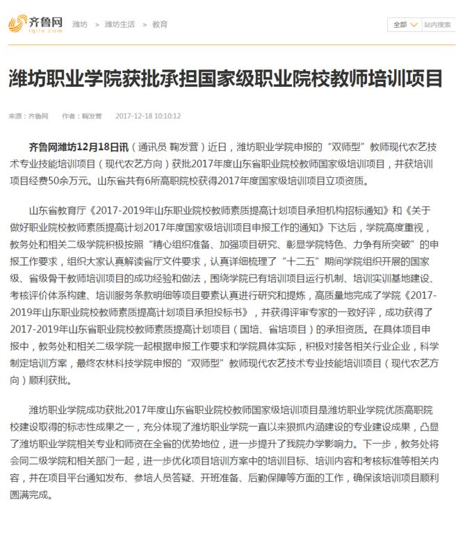 [齐鲁网]九游·官方网站获批承担国家级职业院校教师培训项目