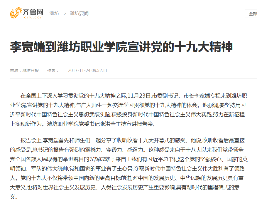 [齐鲁网]李宽端到九游·官方网站宣讲党的十九大精神