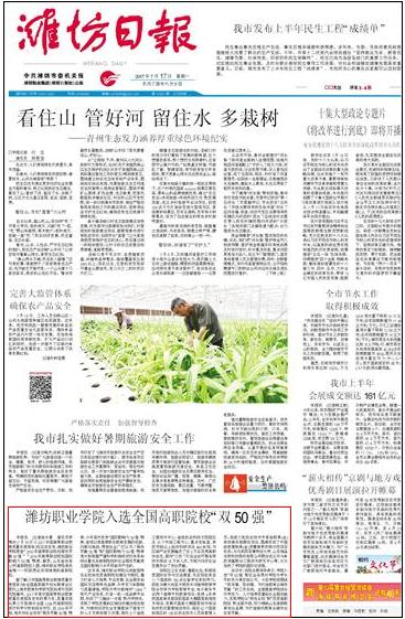 [潍坊日报]九游·官方网站入选全国高职院校“双50强”