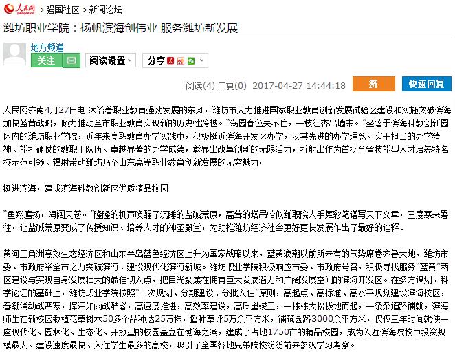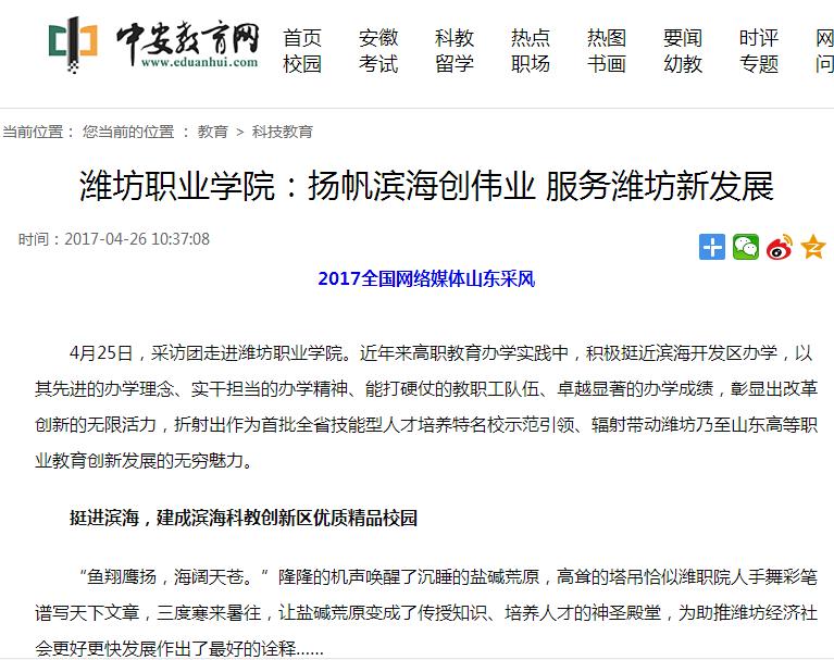 全国主流网媒聚焦服务区域发展的“潍坊职院”模式