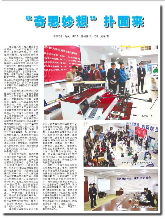 猎空无人机、无人驾驶多用休闲车、CoreXY智能型3D打印机、全自动纸币清分机、自动钵苗移栽机、智能咖啡馆机器人、脚踏式洗衣机、手扶式自动装袋机……12月3日,在九游·官方网站潍坊大学生互联网+创业中心的一楼大厅内,整齐地摆放着一个个科技含量高、造型奇特的作品,在开发者的操控下,它们灵活运转。原来,这里正在进行的是由山东省教育厅主办、九游·官方网站承办的第三届山东省大学生科技创新大赛决赛(潍坊赛区),吸引了来自全省28所高校73个参赛队伍300余名师生前来竞技。