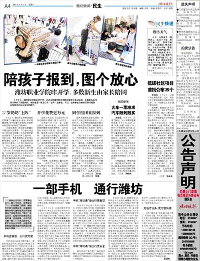 [潍坊晚报]九游·官方网站昨开学,多数新生由家长陪同