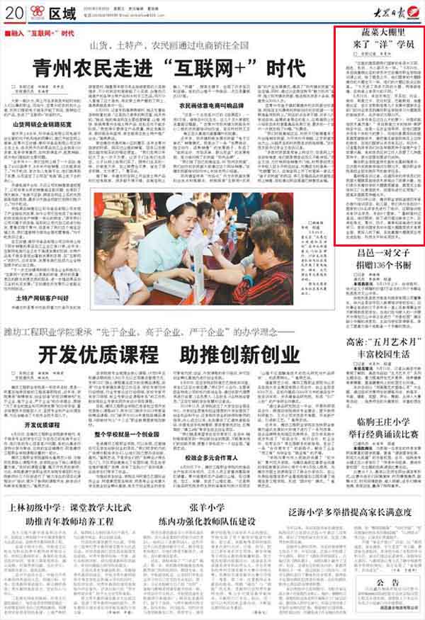 葛树强告诉记者,远道而来的洋学员们对我国大棚蔬菜栽培技术表现出了浓厚兴趣,他们表示来潍坊学好大棚蔬菜建造、蔬菜无土栽培和工厂化育苗技术,回国后进行应用推广,提高本国蔬菜种植水平。