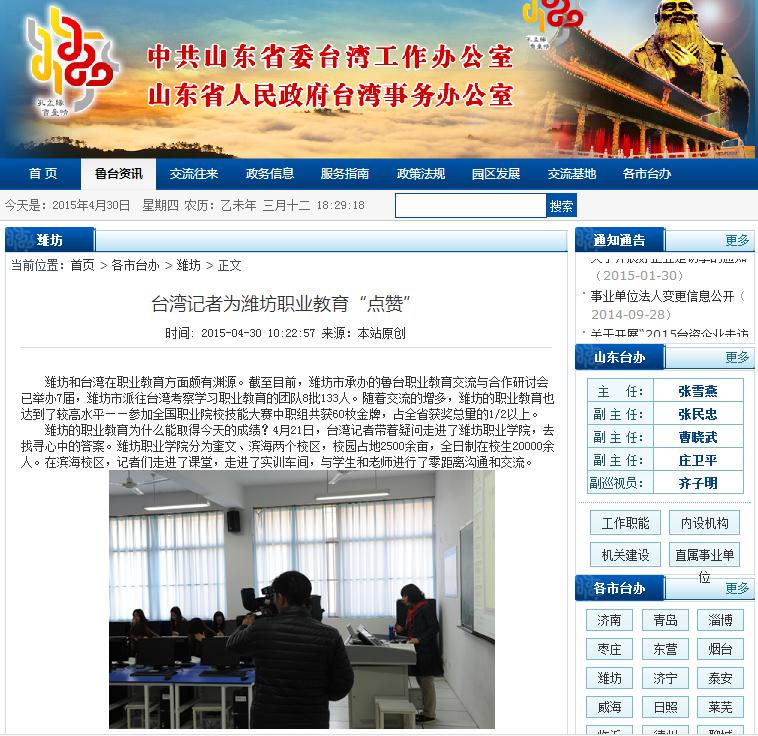 [山东台办网]台湾记者为潍坊职业教育“点赞”