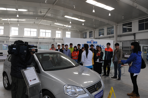最令台湾记者意外的是汽车营销实训中心,因为据他们所知,这样的课程在台湾尚未开设。在汽车营销实训课上,老师耐心讲解汽车销售的各个环节和注意事项,并亲身示范;据介绍,同学们在毕业前有机会去各汽车4S店实习,以提升实际工作能力。
