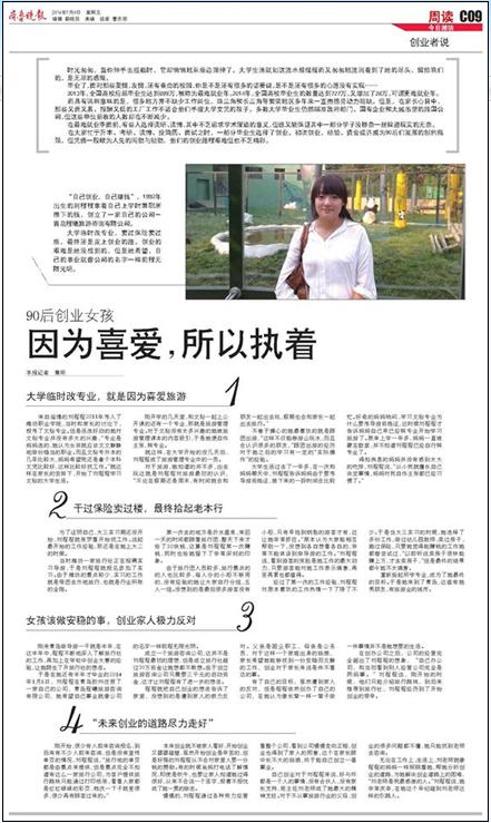 媒体潍职:[齐鲁晚报]90后创业女孩:因为喜爱,所以执着