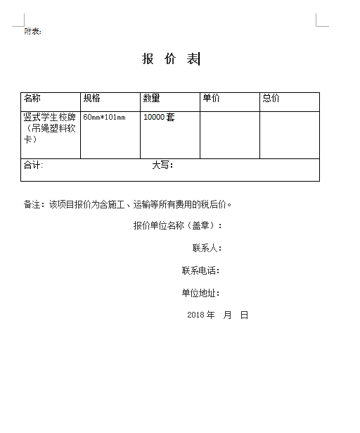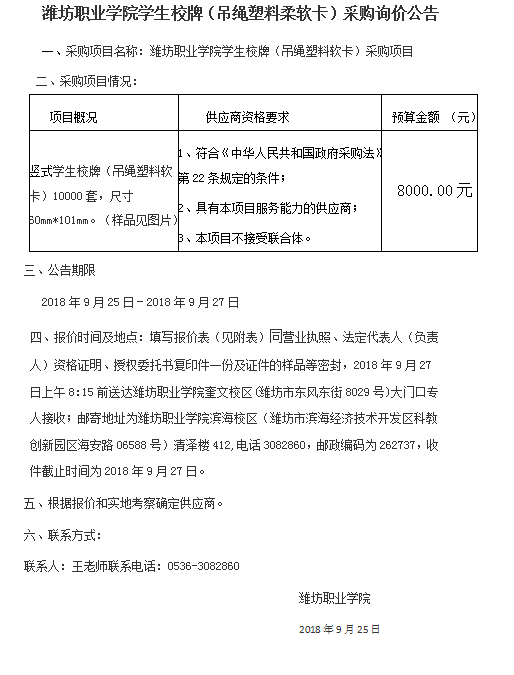 九游·官方网站学生校牌(吊绳塑料柔软卡)采购二次询价公告