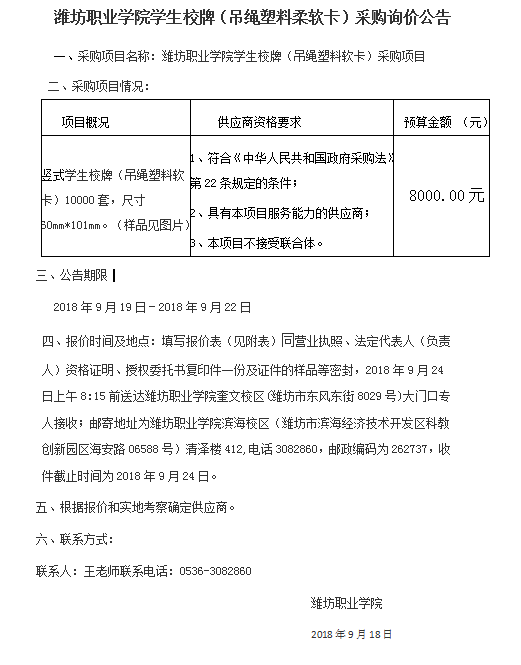 九游·官方网站学生校牌(吊绳塑料柔软卡)采购二次询价公告