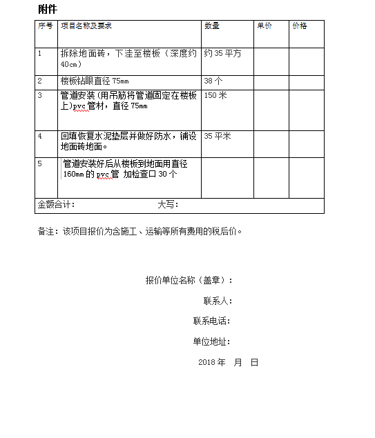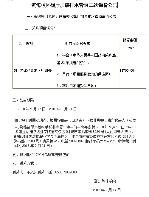 滨海校区餐厅加装排水管道二次询价公告