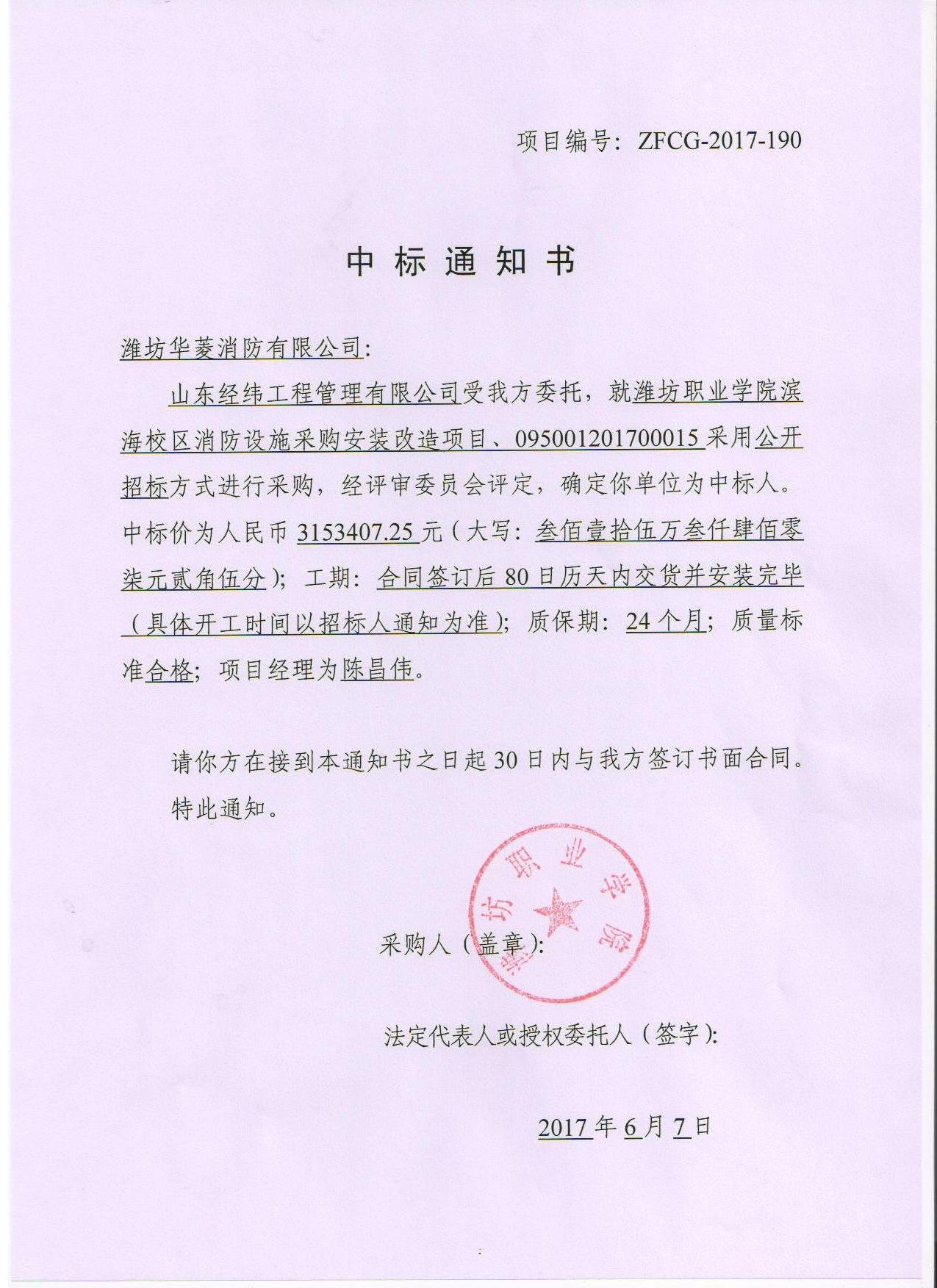 九游·官方网站消防设施采购安装改造项目中标通知书