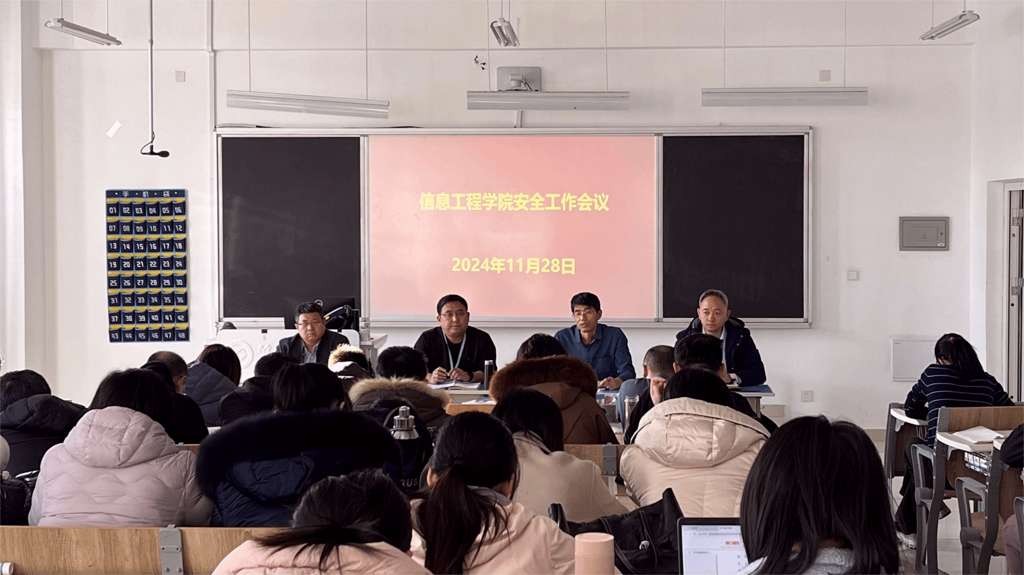 此次安全工作会议的召开,不仅增强了学院全体教职工的安全意识,也为进一步做好学院安全工作指明了方向。信息工程学院将继续秉持“安全第一、预防为主”的原则,不断加强校园安全管理,为师生创造一个安全、舒适、和谐的学习和生活环境。(马佳佳 李蓉蓉供稿)